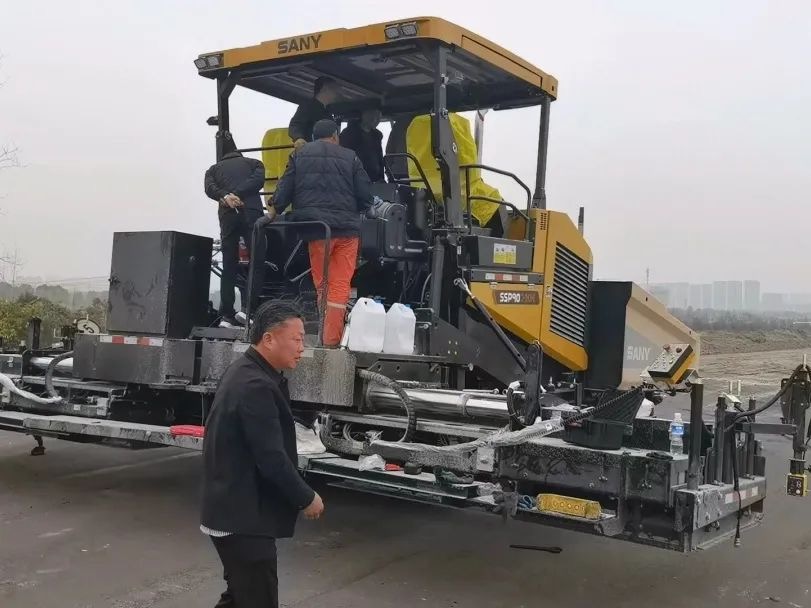 扬州迎来第六台三一C10系列SSP90C-10摊铺机,交付即施工,负责水稳层摊铺,操作手及施工方经理夸赞道:“三一C10系列9米王牌摊铺机性能优越,转场速度快,不耽误施工!”