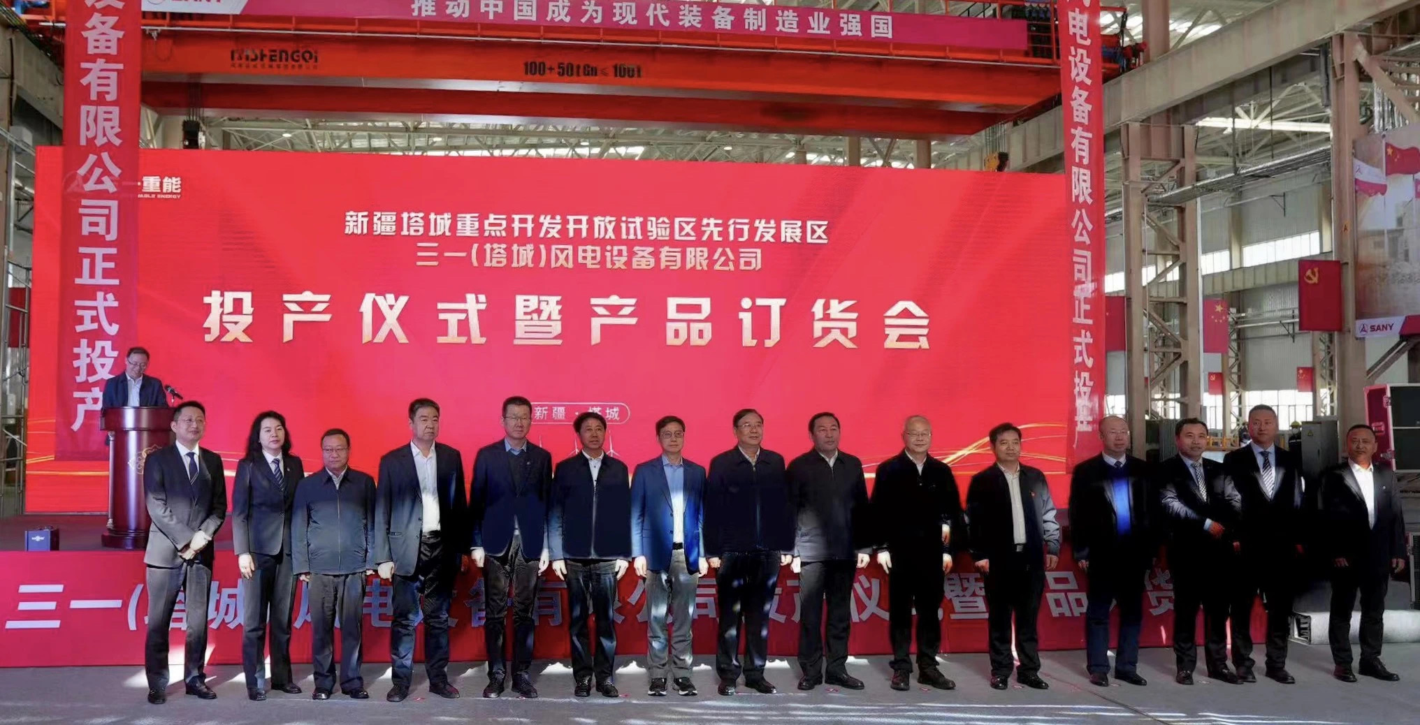 4月25日,三一(塔城)风电设备有限公司举行投产仪式暨产品订货会。新疆维吾尔自治区发展改革委一带一路创新试验处副处长刘勇,塔城地委书记魏建国,塔城地委副书记、行署专员阿依丁·托留汗,国家电投集团新疆能源化工有限责任公司党委书记、董事长章建康,三一重能董事长周福贵,三一重能副总经理余梁为,三一重能副总经理、首席数字官彭旭,新疆自治区、塔城地委及行署、三一重能客户代表等相关领导出席并见证这一重要时刻。本次活动由塔城地委副书记赵曦峰主持。此次活动标志着三一重能又一主机及叶片制造基地落地投产。