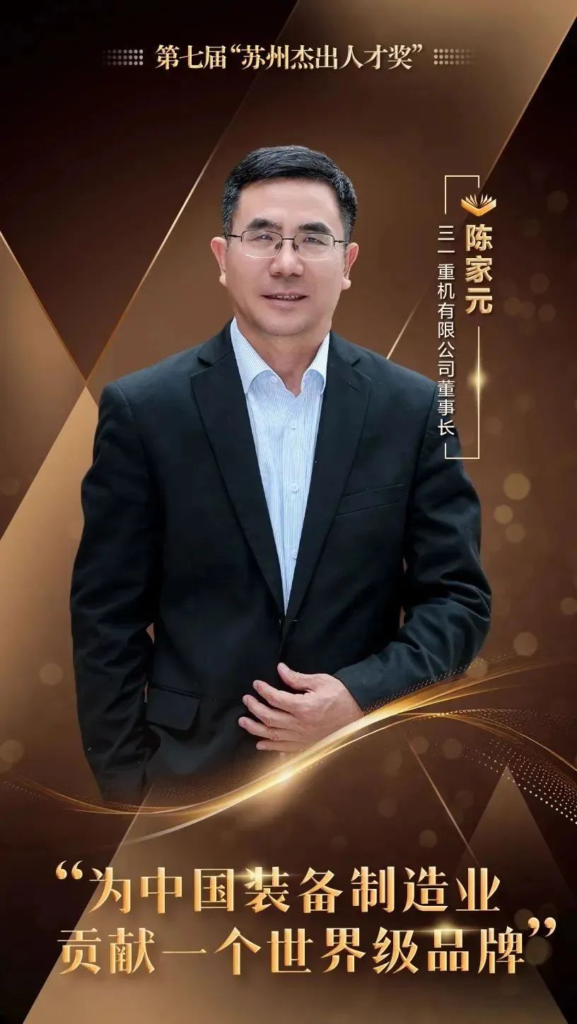 三一集团副总裁、三一重机董事长陈家元成功入选,这也是昆山首位获此殊荣的企业经营管理人才。