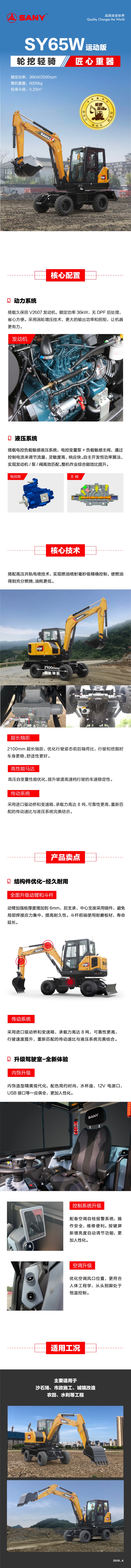 SY65W 运动版是三一重机倾力打造的一款小型轮式挖掘机产品,其轴距长、跑得稳、稳定性强,为客户带来更大的投资收益回报。