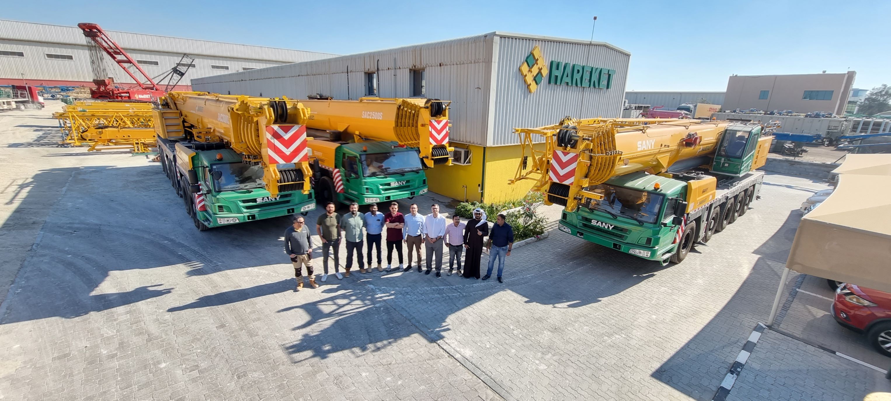 2022年1月24日,三一SAC1600S、SAC2500S、SAC3000S全路面起重机成功交付土耳其Hareket集团。三台设备均配置了Hareket标志性的黄绿色涂装,在阳光下格外显眼。