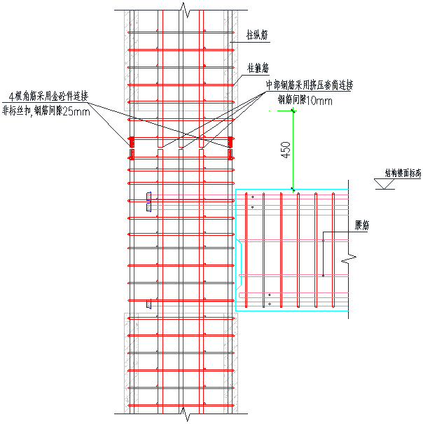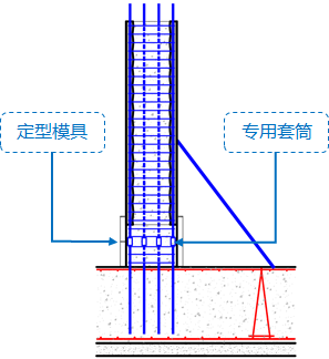 SPCS预制空腔柱安装采用新型的“可调组合钢筋机械连接接头”,预制空腔柱主筋与底部预留插筋通过“可调组合直螺纹套筒”进行连接,下部后浇段范围钢筋隐蔽验收通过后,进行模板安装,在预制空腔柱的空腔内浇筑混凝土,使结构形成整体。