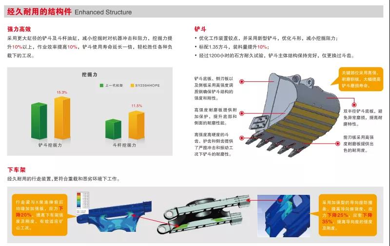 为了充分满足客户的需求,三一荣耀推出了以土方为主,兼顾石方的全新一代SY235H挖掘机——SY235H HOPE。