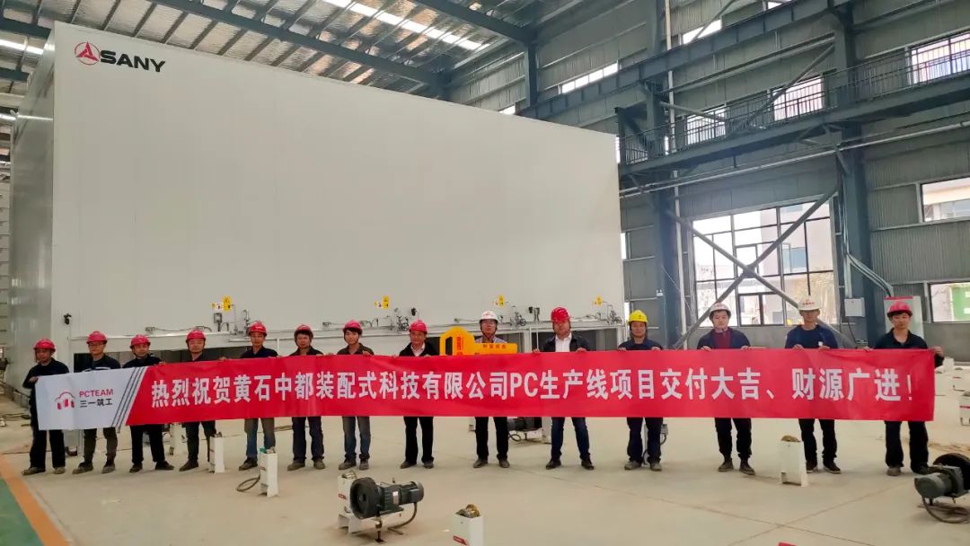 近日,三一筑工客户湖北中都集团PC生产线成功交付,该生产线是中都装配式建筑智造基地的重点项目,该基地是由湖北中都集团有限公司投资打造的绿色建筑产业升级项目,也是黄石市政府2021年重点支持的工业项目。项目区位优势明显,位于国家级高新区“黄石大冶湖高新技术产业开发区”。项目规划总用地面积194亩,总投资6亿元,项目建设包括装配式建筑制造基地和绿色环保商品砼基地。设备进场安装至交付仅39天,比原定安装天数提升35%,三一专业安装队在兼顾质量保障的情况下,为客户节省了宝贵的时间,提前交付。