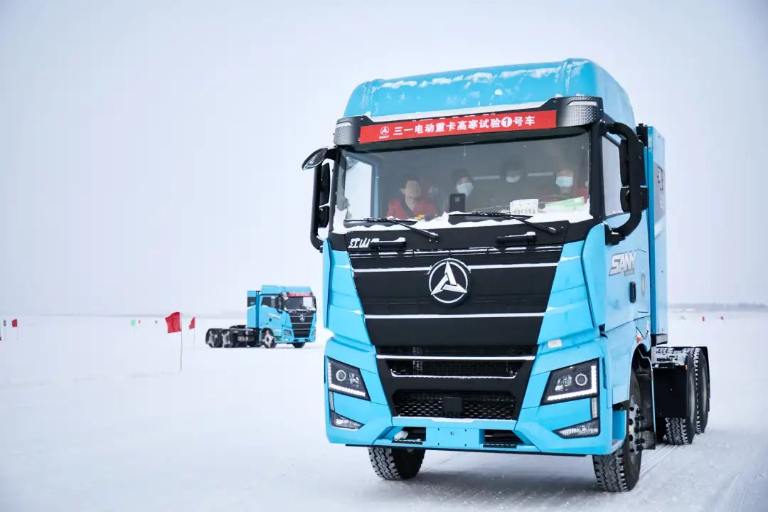 其中,某工品牌电动重卡,在6月夏季,平均气温25℃到30℃进行测试;三一电动重卡,在1月冬季平均气温0℃到-5℃寒冷天气进行测试。