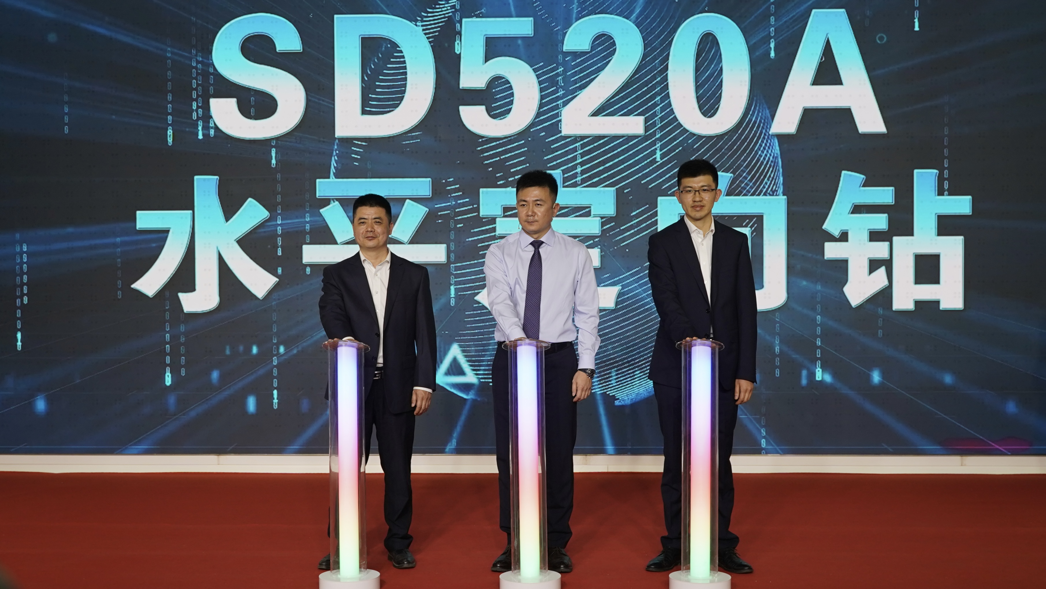 伴随着隆重的下线及发布启动仪式,直播间迎来了全场人气最高的时刻,北京三一智造全新推出的水平定向钻SD520A正式亮相舞台,本次下线仪式特别邀请了北京三一智造总经理王龙刚先生、研究院副院长刘志岩先生、制造部部监吴志杰先生共同见证这个历史时刻。