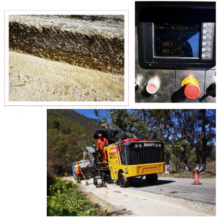 省道S212石红线是位于云南南部的一条主干道,因车流量大,年久失修,该路面毁损严重,三一铣刨机无论在20公分的水稳、沥青层一刀铣刨,还是在3公分的高强度水泥路面铣刨,都展示出良好的工况适应能力!