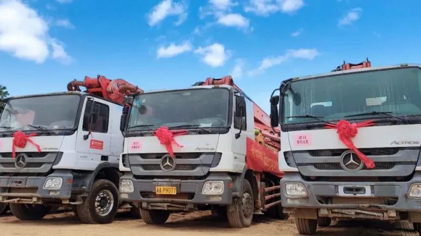 本次出口的二手机机龄最高有4年,是一台三一56米泵车。由于保养良好,打料有力,客户非常满意,直接买下了原车。