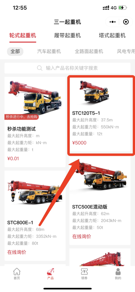 第一步:进入“三一易起购”在线商城小程序首页,选择心仪的活动产品