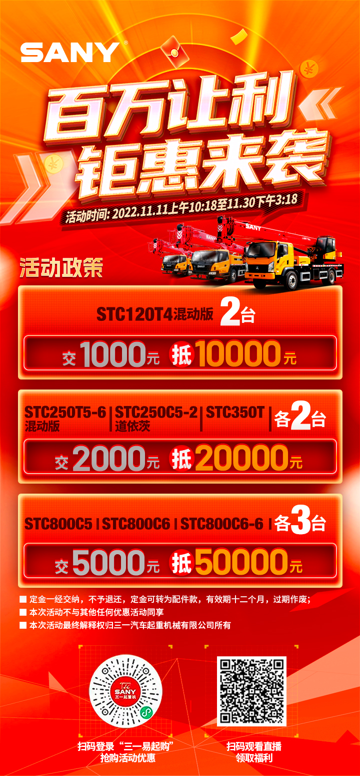 1.2022年11月11日10:18-11月30日15:18,在“三一易起购”在线商城成功缴纳定金,即获得对应商品的优惠资格;