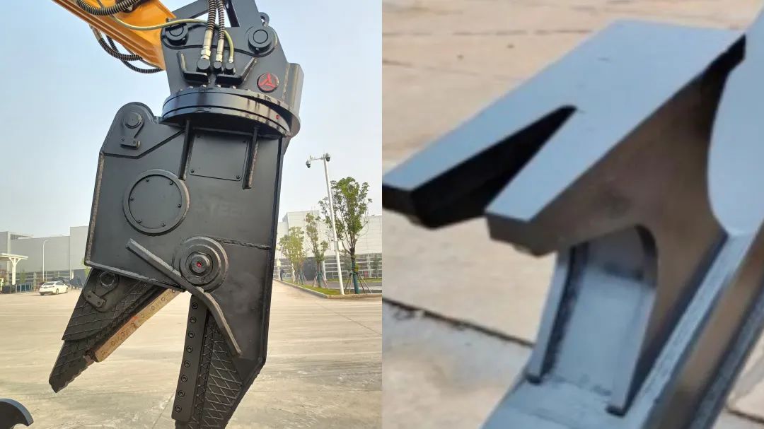 斗杆前端配置加强型拆车钳,具备超强剪切破碎力,削铁如泥,轻松实现汽车解体;360度旋转设计,精准撕扯解体目标,快速分类处理不同材质;作业高度达10.5米,半径近10.8米,作业处理量大幅度提升。