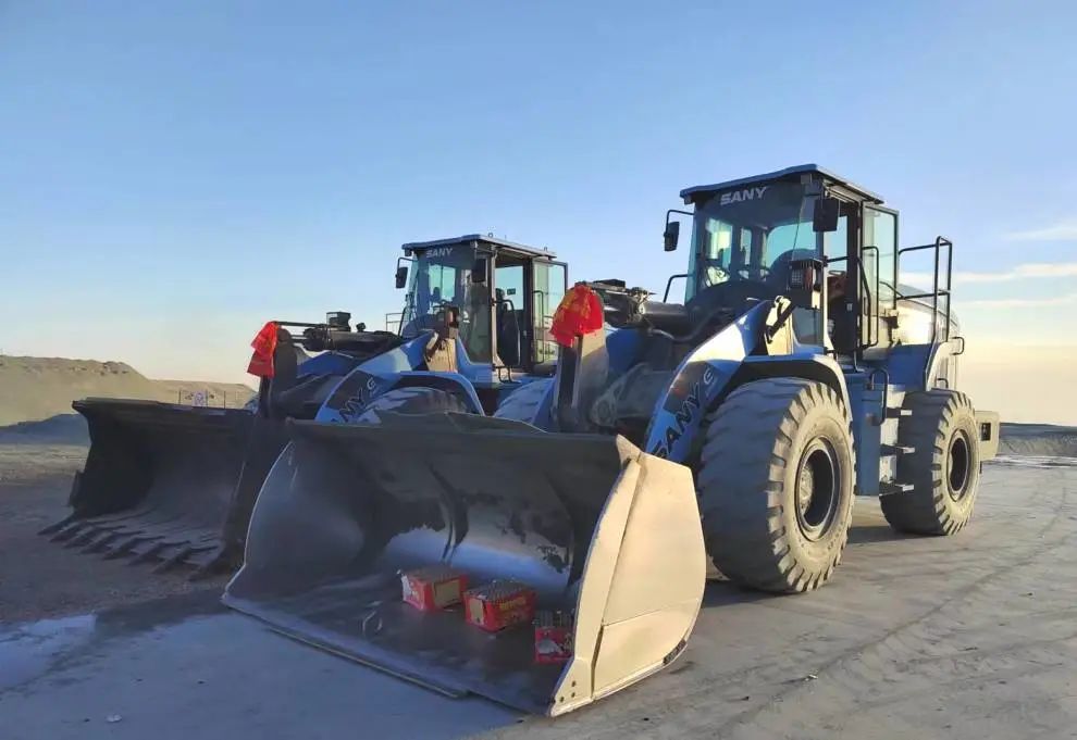 “天海蓝”配色的江山EV550 、三一装载机,给煤尘飞扬的矿区增添了一抹靓丽风景。