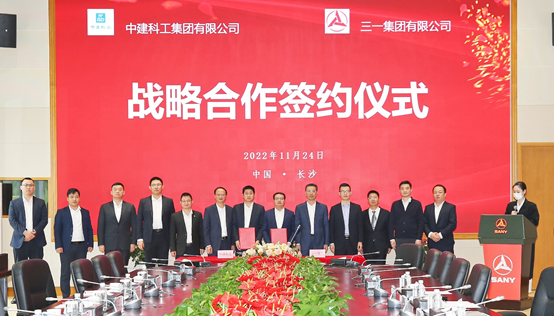 11月24日,中建科工集团有限公司与三一集团有限公司在三一集团总部长沙进行会谈,双方就推动智能建造新生态深入交流,并举行战略合作协议签约仪式。三一集团高级副总裁、泵路事业部董事长向儒安、工程车辆事业部常务副总经理曹特、工程车辆事业部营销公司副总经理陈志超,中建科工集团有限公司总经济师蒋礼、研究院院长李任戈、智慧停车公司总经理蒋官业等领导和嘉宾参加此次会谈和签约。