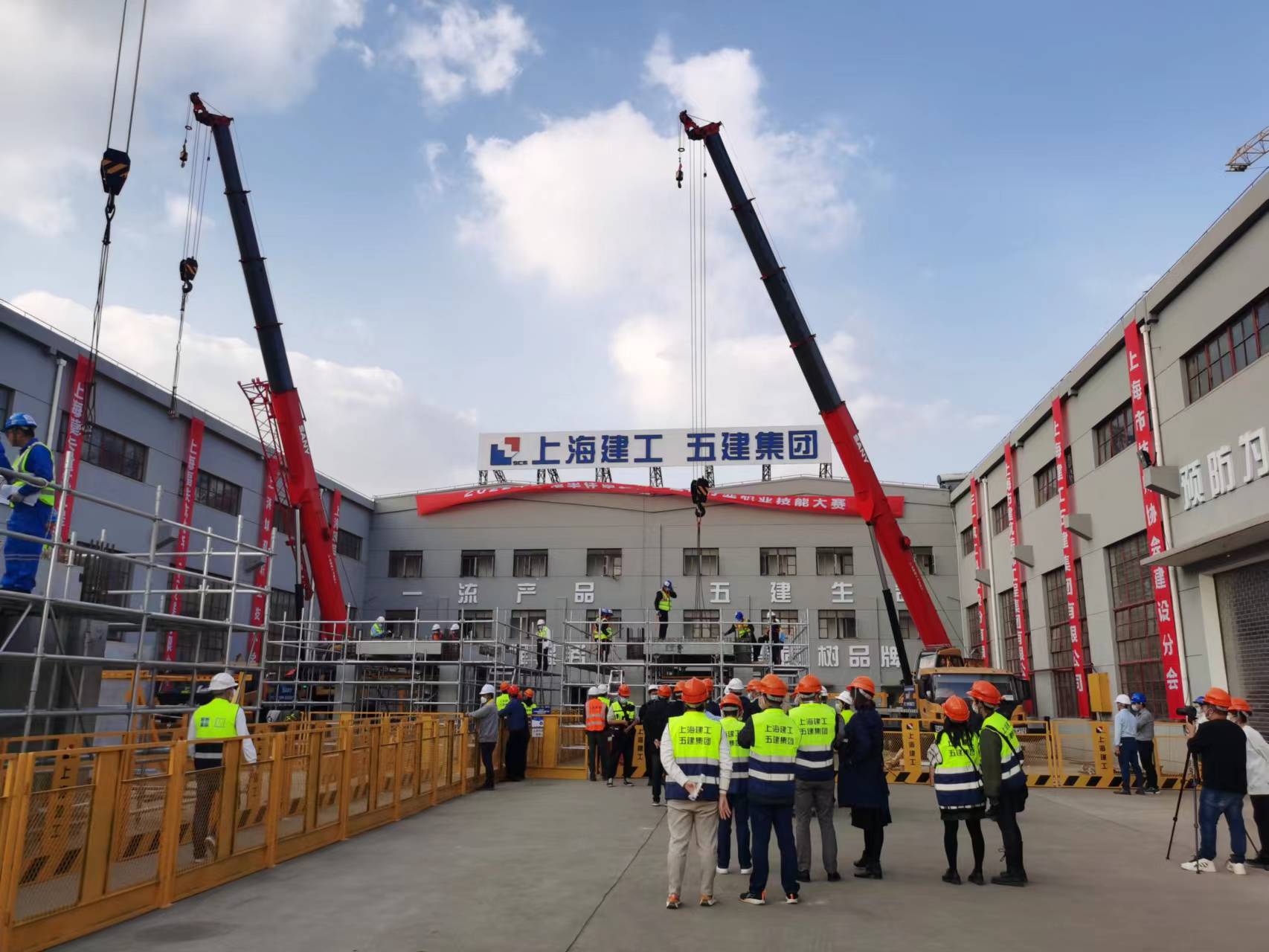 上海建工五建集团有限公司副总工,工程研究院院长潘峰介绍说:“要实现国家碳达峰、碳中和的目标,首先建筑结构体系要装配化、绿色化。其次现场作业要实现标准化、工具化,减少现场材料浪费、器械浪费。但最重要的是装备机械要用更节省、更环保的,这次我们采用的就是三台三一插电版汽车吊,用电作业一天下来要比用油节省300元左右。”