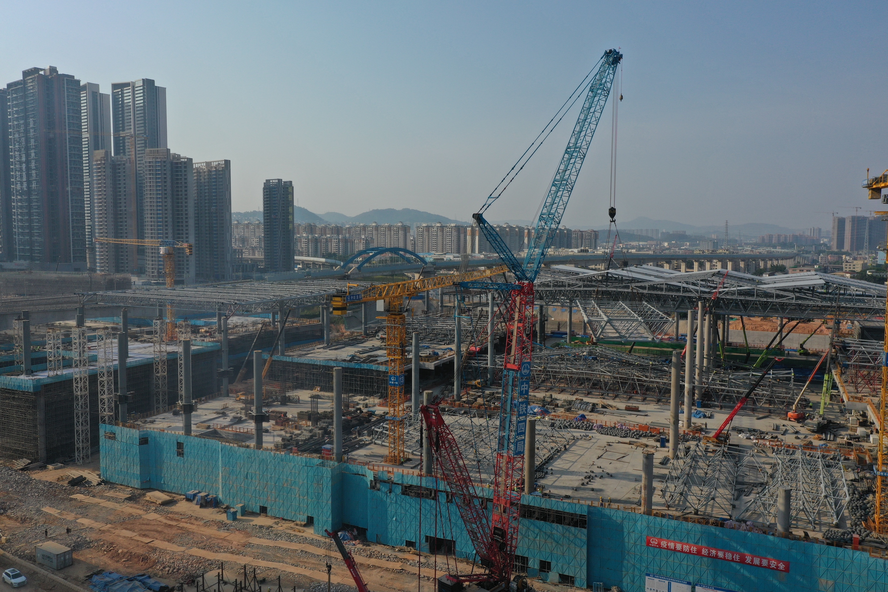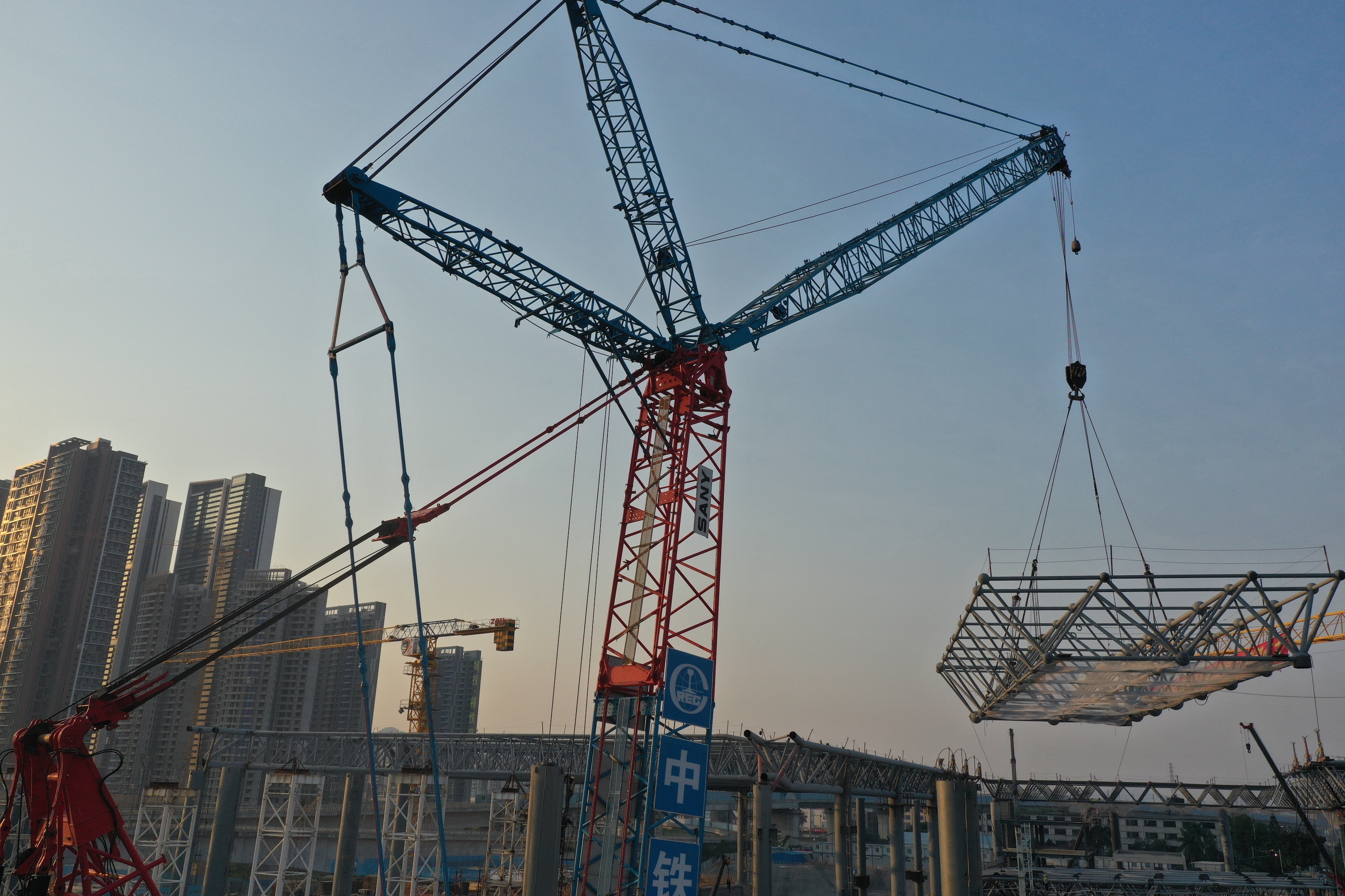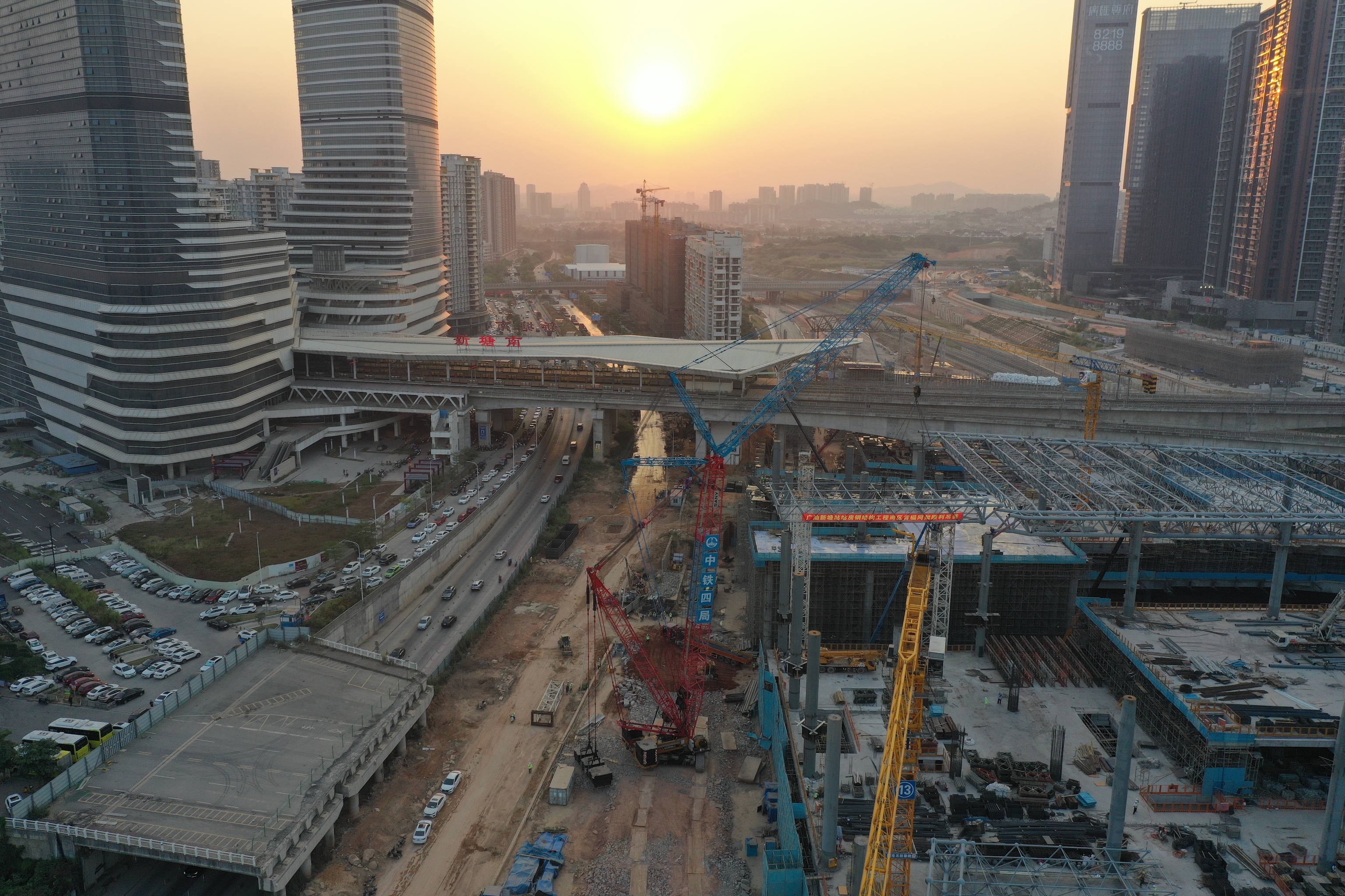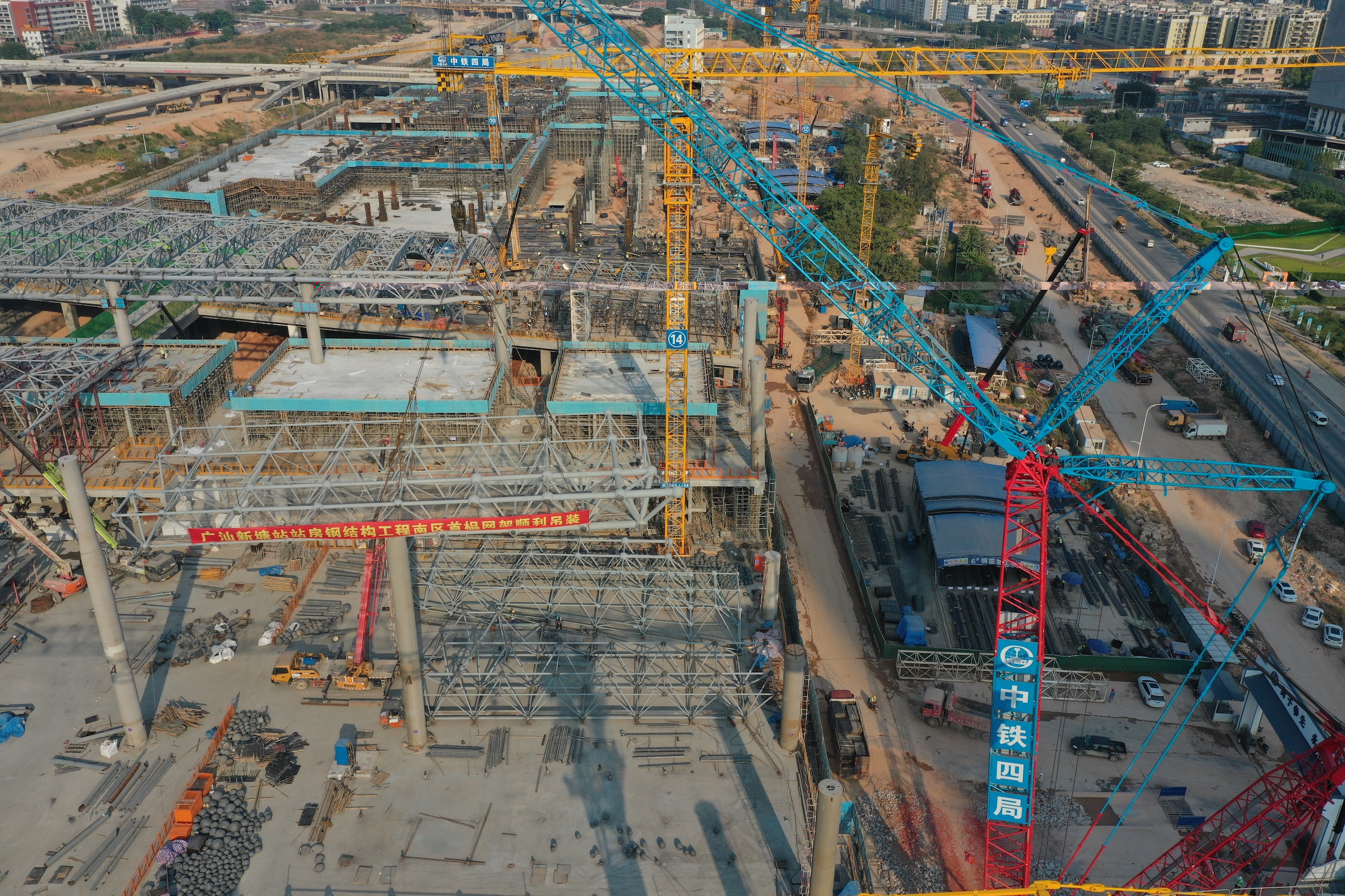 新塘站综合交通枢纽位于广州市增城区新塘镇,是广深铁路、广汕铁路、穗莞深城际铁路等多条轨道交通线路的交汇点。近日,其站房南区需要安装一个钢结构网架。原本不是什么难事,但实际施工有多个难点,一时让项目部发了愁。