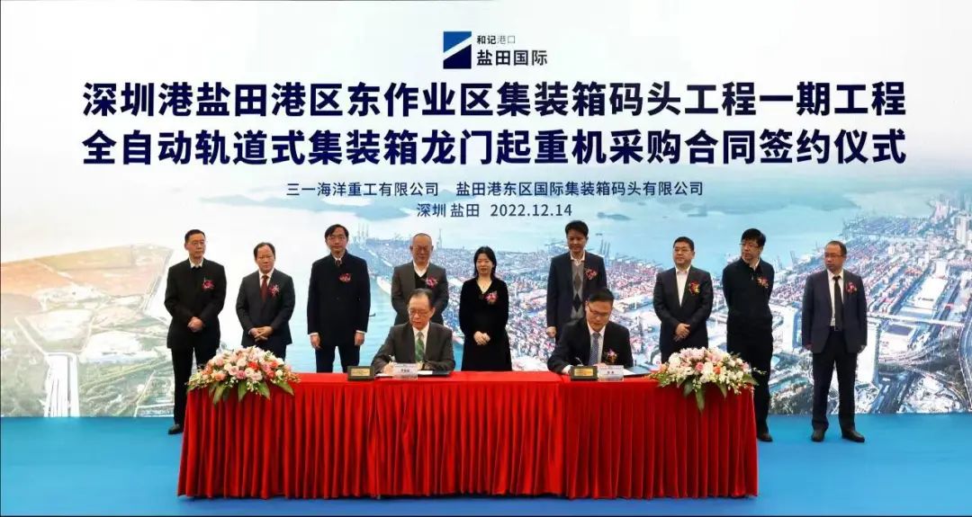 12月14日,盐田港东区国际集装箱码头与三一海洋重工签订42台全自动轨道式集装箱龙门起重机合同,总金额近10亿元。