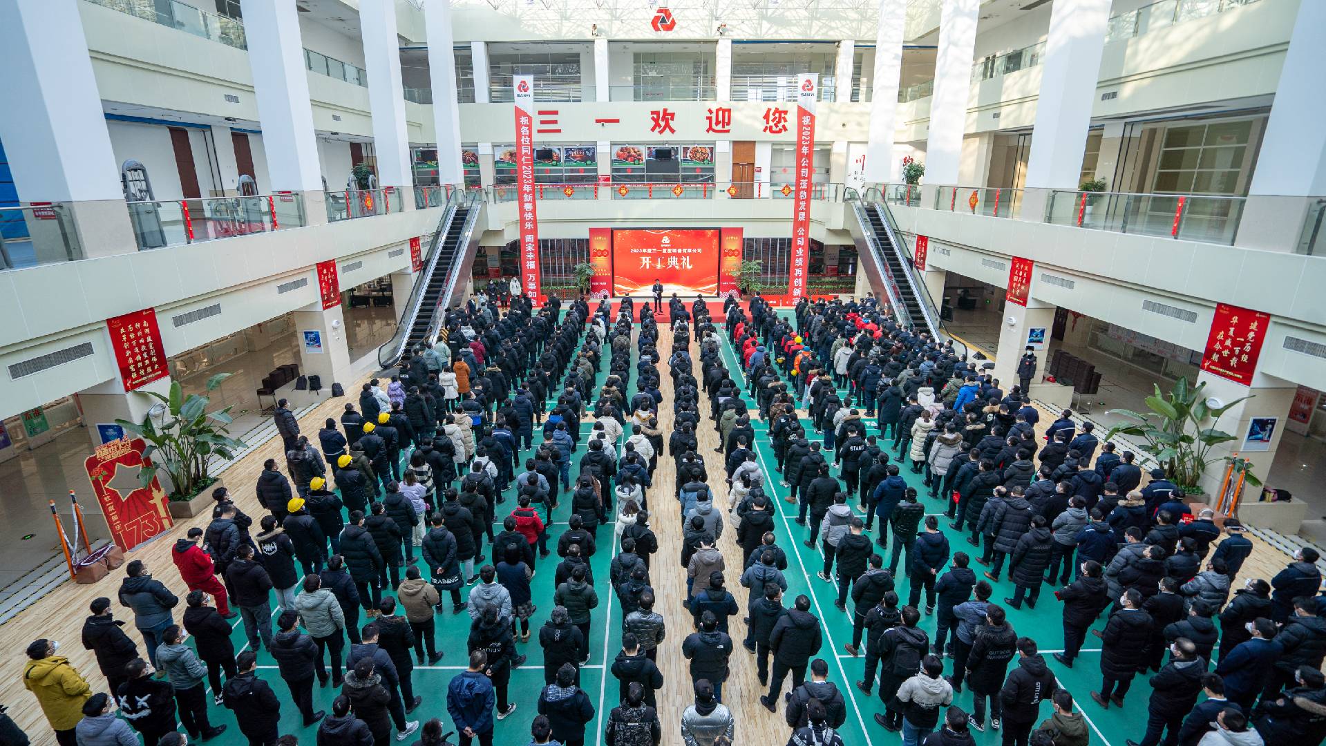 历史书写辉煌过往,时间掀开崭新篇章。2023年1月27日8时18分,采掘研究院院长尹力先生宣布三一重装开工典礼暨A绩效员工表彰正式开始。