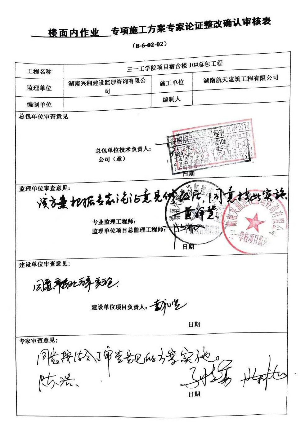 2022年9月27日,三一工学院10#栋宿舍楼面内作业专家论证会在长沙顺利举行。与会的权威专家及长沙质监站的相关领导对“面内作业技术”给予充分肯定。
