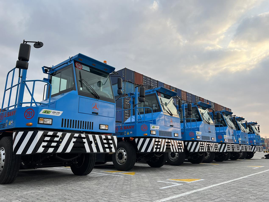 近日,三一海工为宁波港定制的53台纯电动集卡完成全部交付。