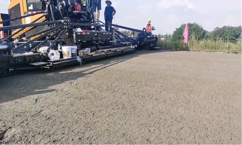 2022年是充满挑战的一年,受疫情因素影响及遭遇百年不遇的高温天气 ,严重耽误了开梁高速的施工进度。为保质量、抓进度,确保2023年7月前后竣工,施工方四川中恒景祥建筑工程有限公司选用三一一整套前场摊铺设备用于开梁高速水稳和沥青摊铺,这套设备中就包含一台三一SSP130C-10大宽度摊铺机。