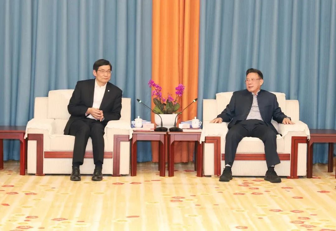 中国建材党委书记周育先到访三一,与梁稳根座谈