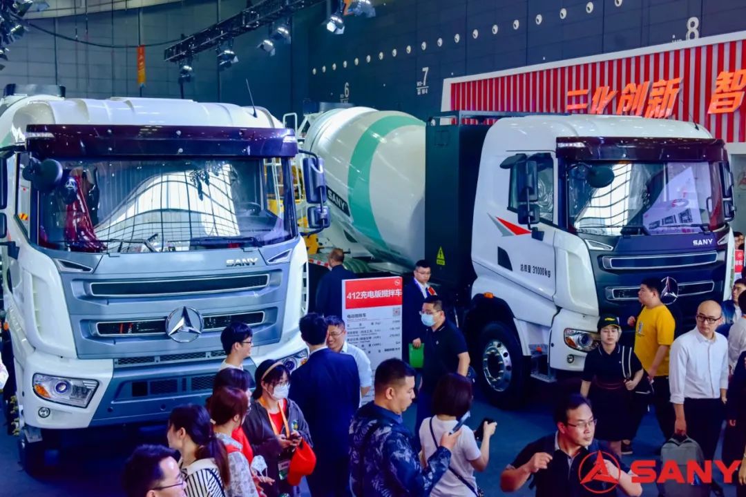 深受市场青睐的408、412电动搅拌车整齐列队,气势如虹。当前,三一电动搅拌车已连续两年市占率在50%以上,稳居行业第一。