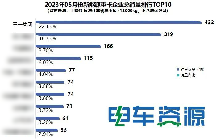 其中,5月,三一销售422辆新能源重卡,单月占比22.13%,同比增长54.58%;