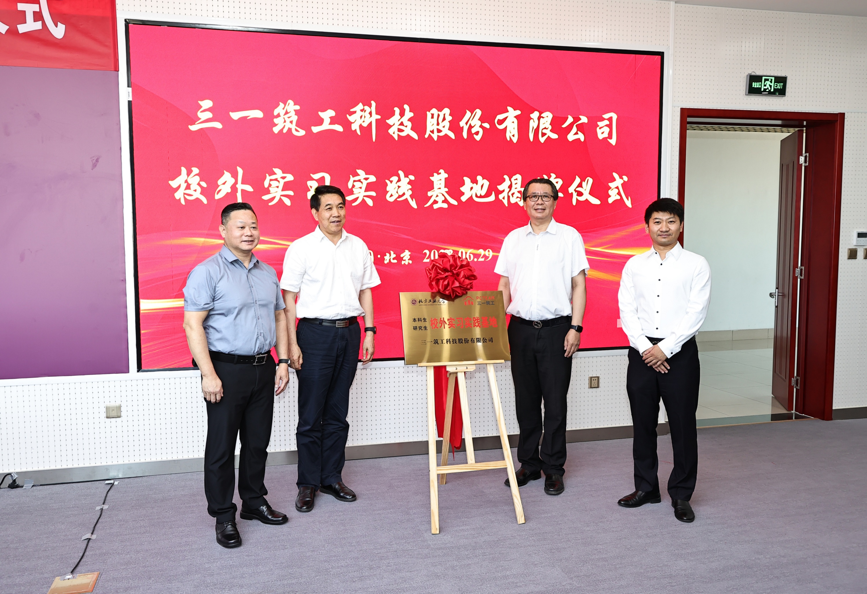 在仪式上,北方工业大学副校长卢晓斌与三一筑工总工程师马云飞签订了校企合作协议,并对三一筑工“校外实习实践基地”进行了揭牌。应急管理部原副部长、国家减灾委秘书长郑国光,清华大学公共安全研究院首席研究员苏国锋,应急管理部风险监测和综合减灾司原副司长尹光辉,北方工业大学校长张立峰等领导共同见证了签约和揭牌仪式。