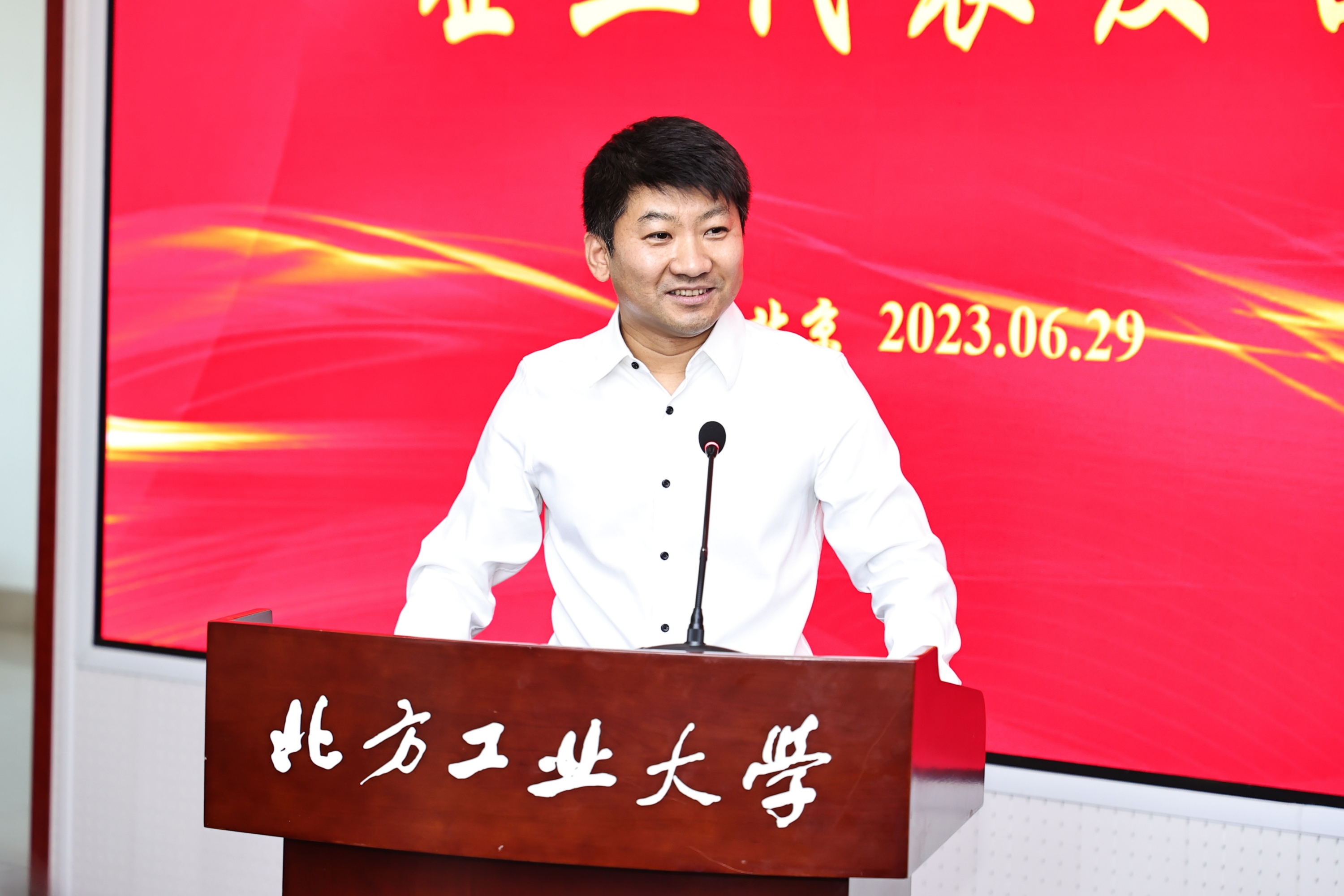 北方工业大学校长张立峰致辞时,对签约企业代表及专家的到来表示热烈的欢迎,对签约企业长期支持学校科研工作、学科专业建设和人才培养表示诚挚的感谢。张立峰详细介绍了北方工业大学的发展历史、“老工科、新内涵”的发展特色和校企合作愿景。