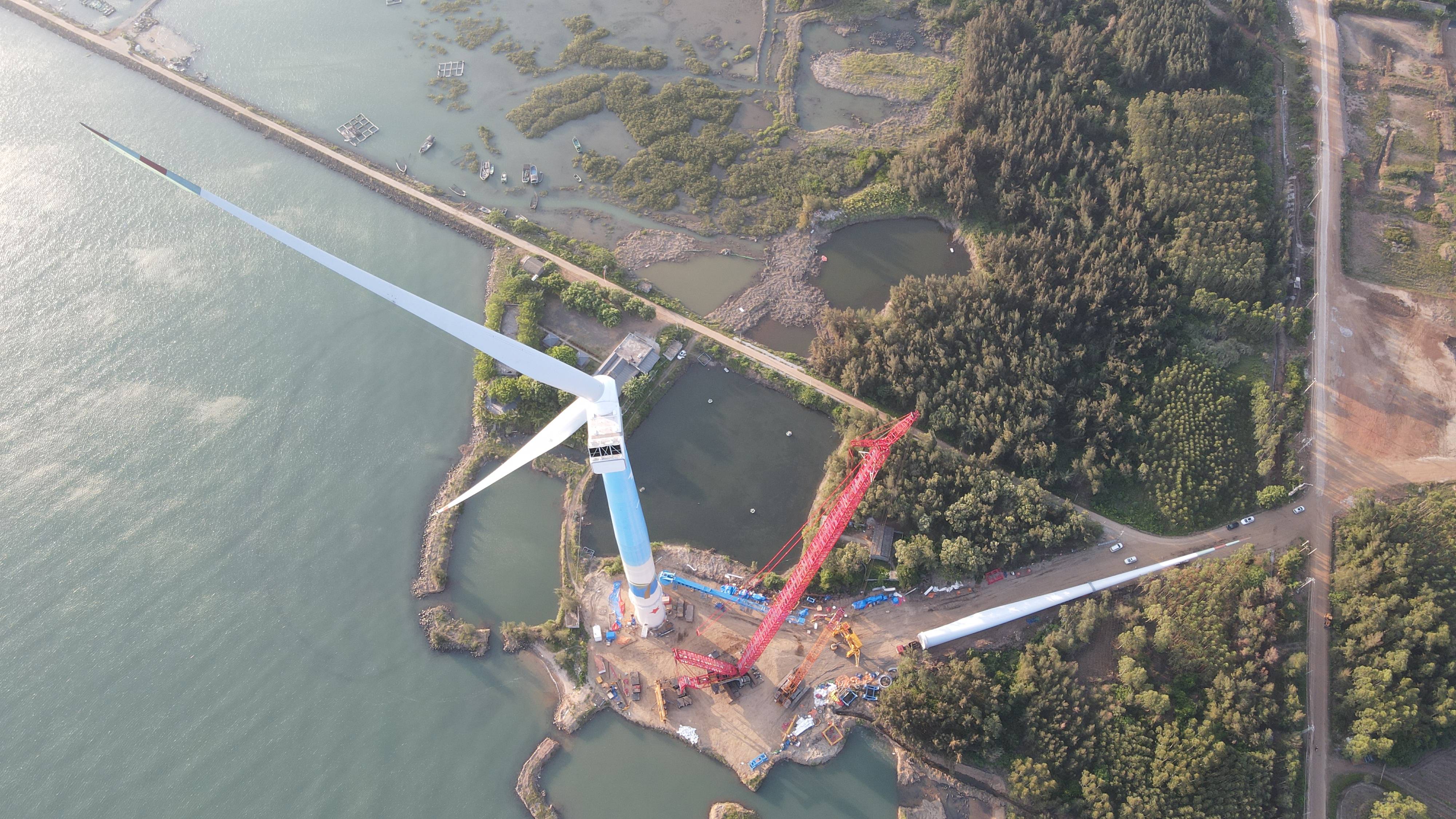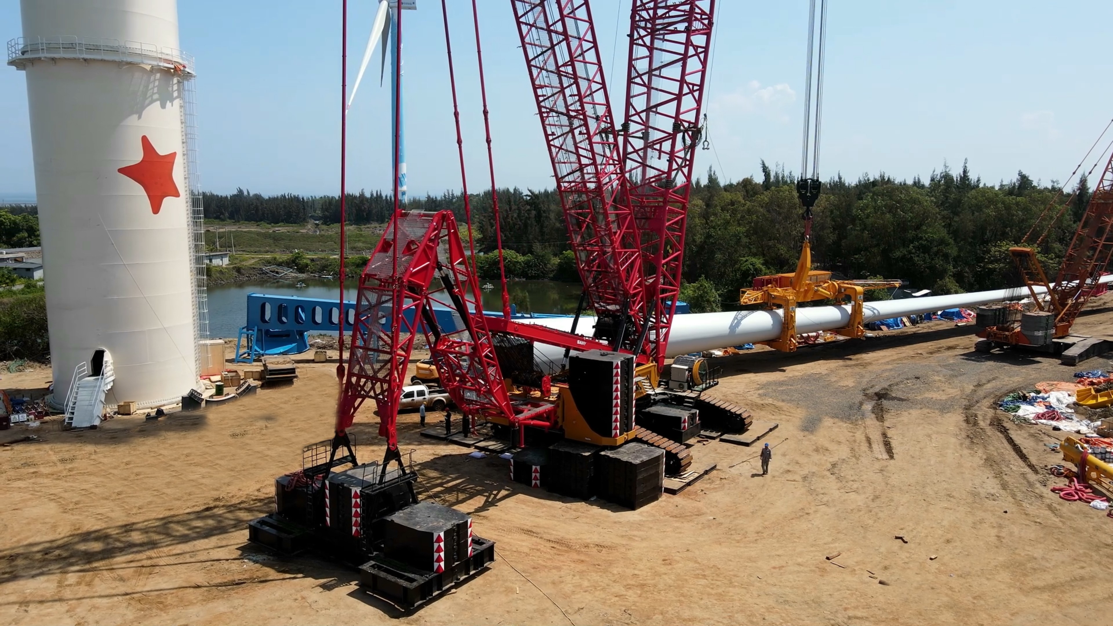 近日,海南临高明阳某海上风机试验项目正式完工,力弗汀(上海)机械工程有限公司的SCC17000TM-1履带起重机,承担2台超大型风力发电机组吊装任务。此次吊装的风机,轮毂中心高度达到150米,机舱重445吨,叶片长度达127米。