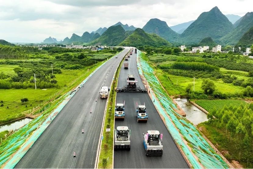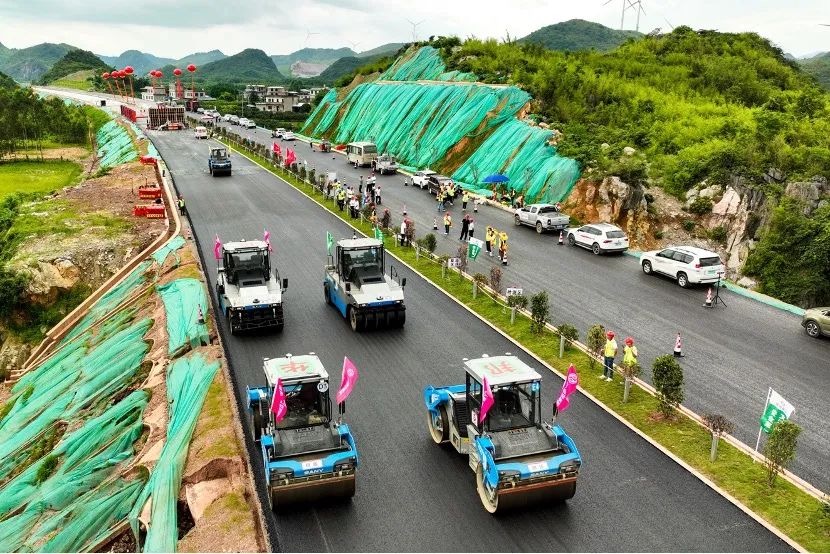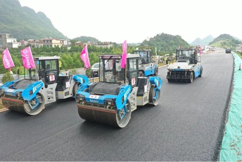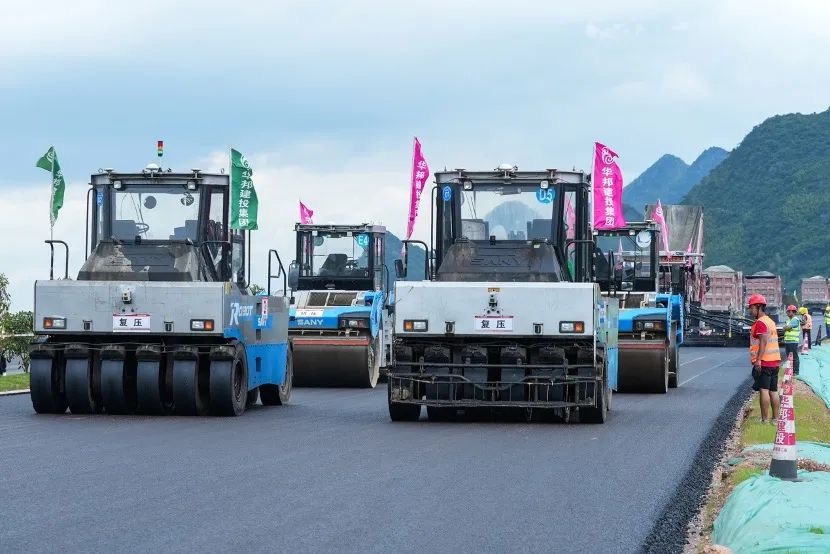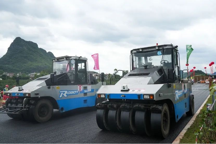 夏日酷暑难耐,无人机群施工不等待!近日,在广西灌阳至平乐高速公路(以下简称“灌平高速”)的施工现场,一抹靓丽的三一“科技蓝”闯入视野,一台台无人摊压设备正在有条不紊的进行沥青路面的摊铺和压实作业。