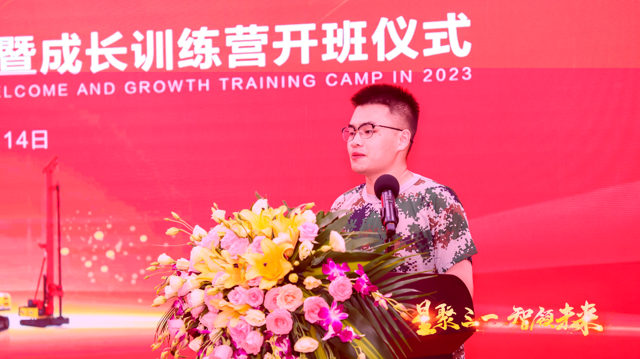2023届新大学生汪克尧作为学员代表进行了发言,表达了加入三一后重任在身的使命感,以及想要扎根于三一努力实现自我的价值追求,争做“能解决问题的人”。