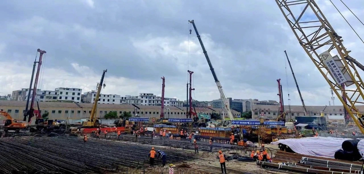 该项目施工方为云南建投第三建设有限公司,正在进行工程桩施工,工地现场有14台三一旋挖钻机。