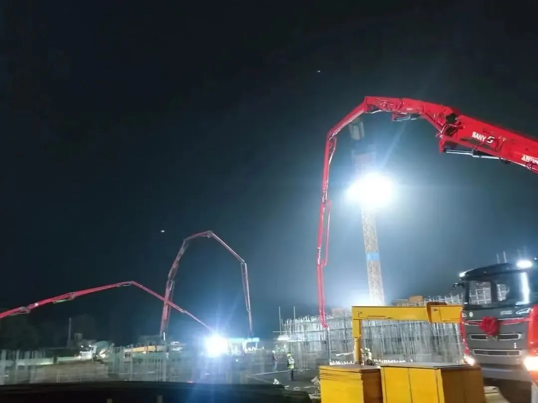 图:项目方正日夜施工,三一微混泵车长时间、高强度、持续性作业得到了考验
