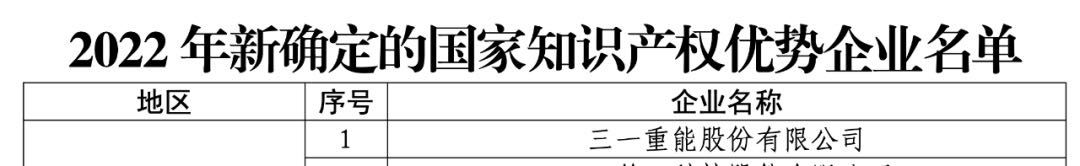 近日,国家知识产权局正式公布2022年新一批及通过复核的知识产权示范企业和优势企业名单:三一重能股份有限公司(简称“三一重能”)被认定为“国家知识产权优势企业”。这是三一重能继“智能制造标杆企业”之后荣获的又一国家级荣誉,该荣誉是对三一重能在知识产权及技术实力方面的权威认可。