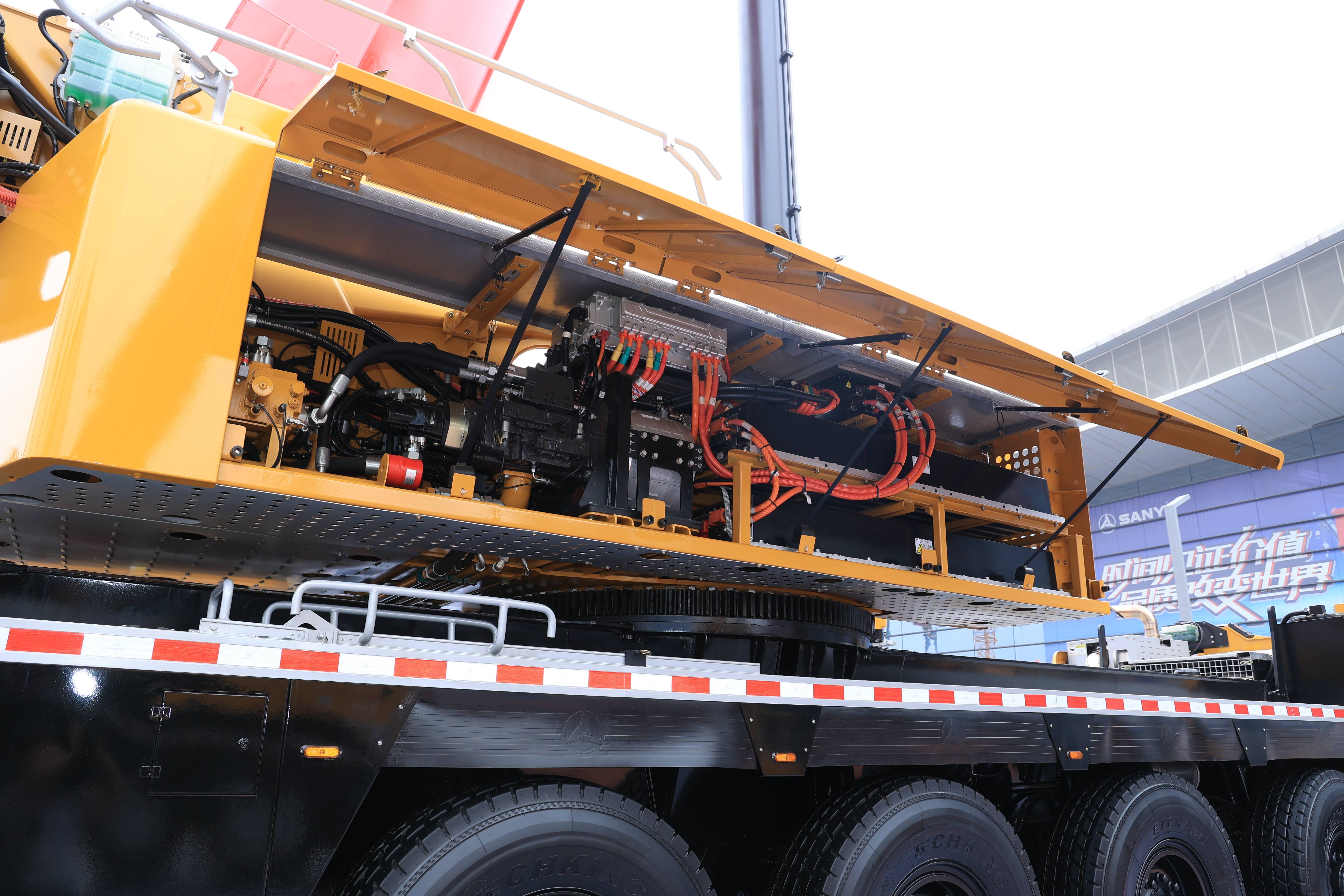 SAC1300C8PHEV上车实现了全电动化,150kW油泵电机+ 150kW卷扬电机+60kW回转电机,作业静音不扰民。