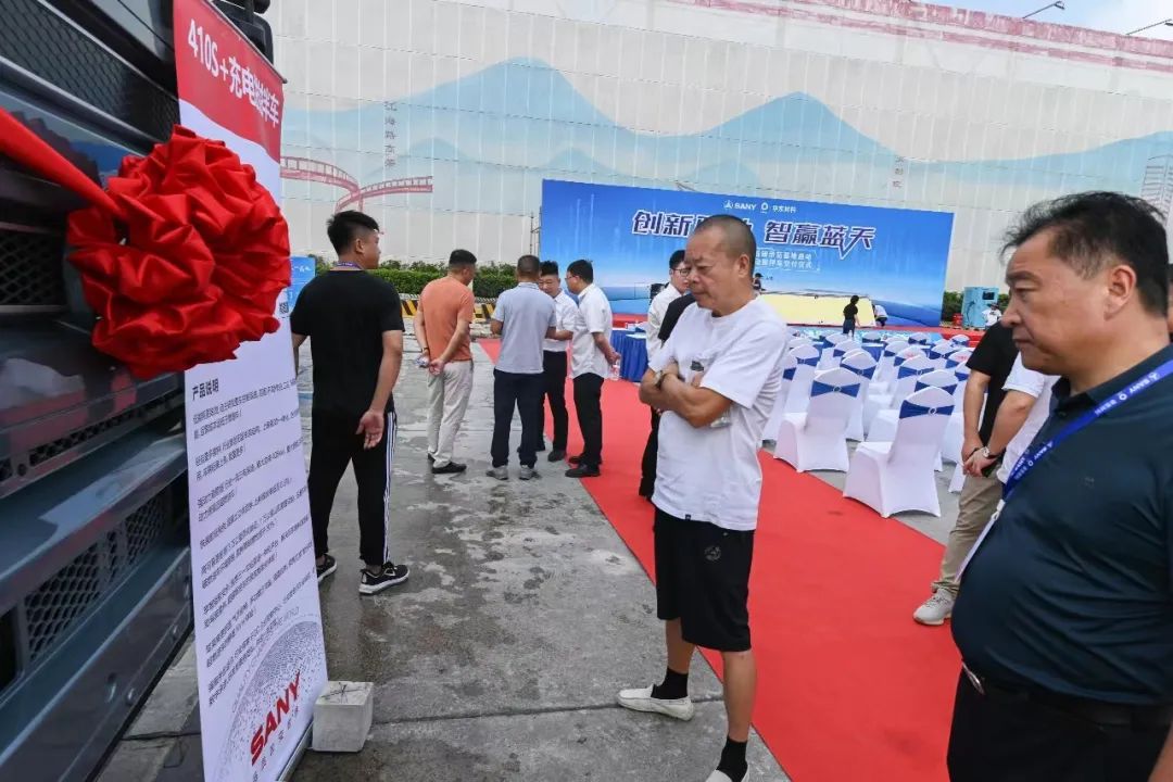 崭新的三一纯电搅拌车吸引了嘉宾们的脚步