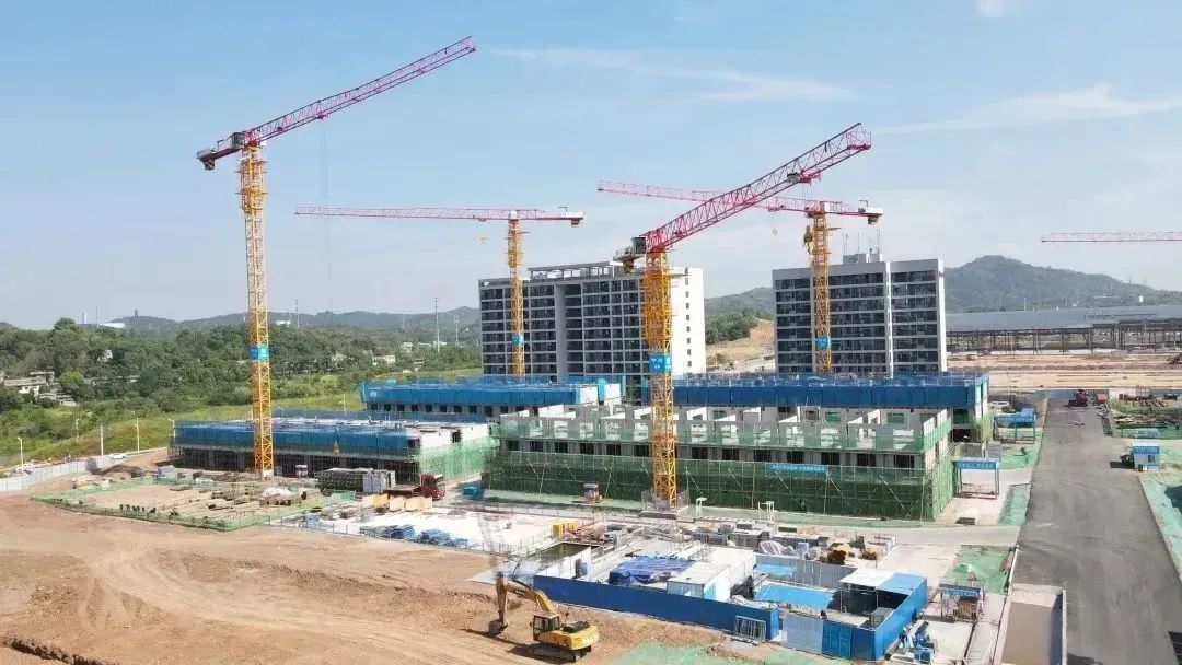 在湖南省株洲市荷塘区三一智慧钢铁城项目二期一标段厂房施工现场,起重机吊装忙碌不停,建设如火如荼。