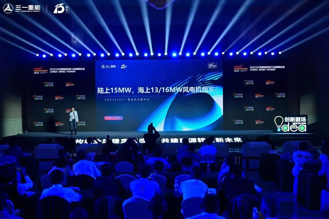 展会期间,三一重能重磅发布了全球陆上最大的15MW风电机组,以及13/16MW海上风电机组,在大兆瓦机组发展道路上再次遥遥领先。