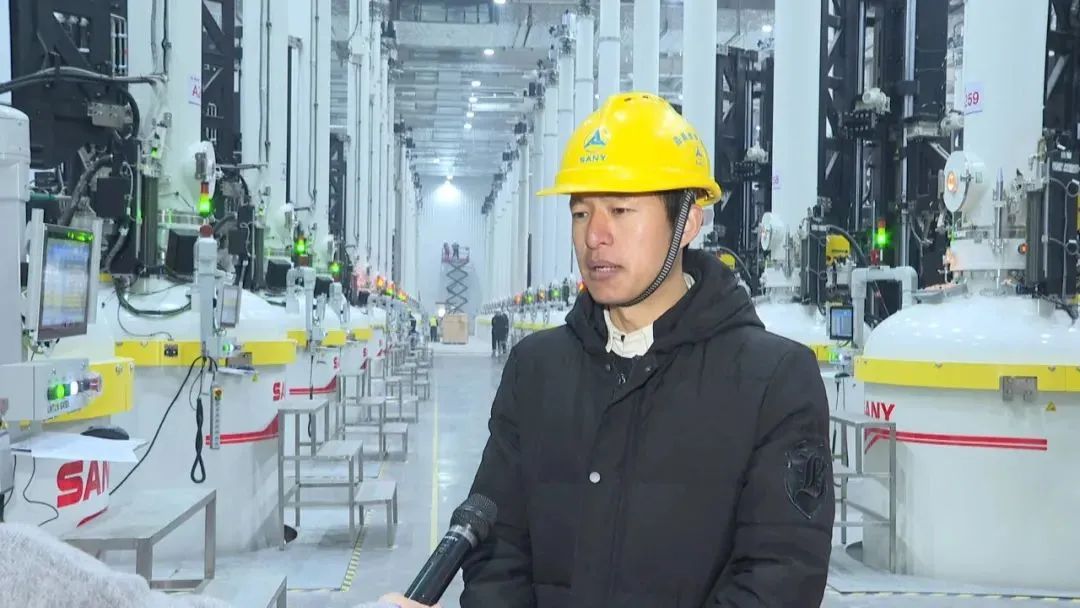 三一朔州一期单晶硅项目生产经理 王正强:目前我们单晶车间西北边这面160台炉子已经全部立起来了,设备调试交付了45台炉子,这两天已经陆陆续续生产出晶棒。机加车间这边一台设备昨天已经调试完成,今天正式投产。切片儿车间这边设备已经陆陆续续运输过来了,这两天也在陆续的调试,计划在年前切片这边也正常运行。