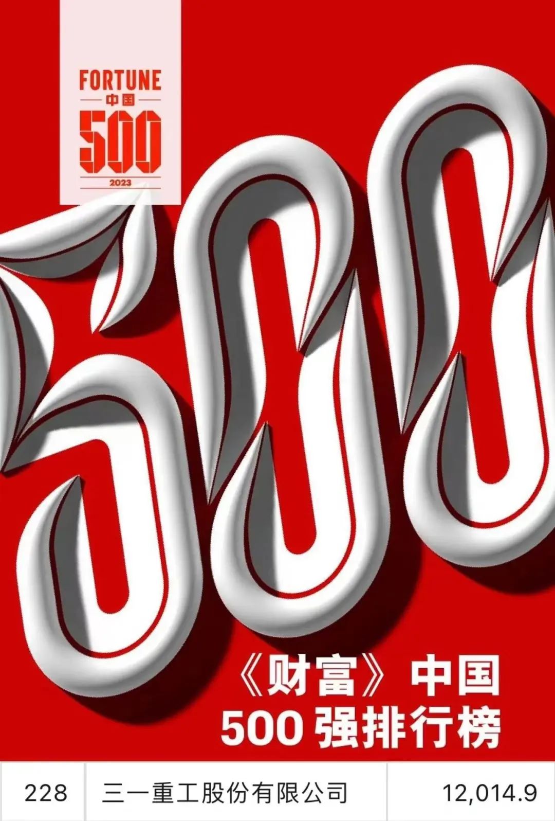 2023年《财富》中国500强排行榜发布,上市公司三一重工以120.14亿美元的营业收入位列第228位,自2010年以来已连续第14年上榜。
