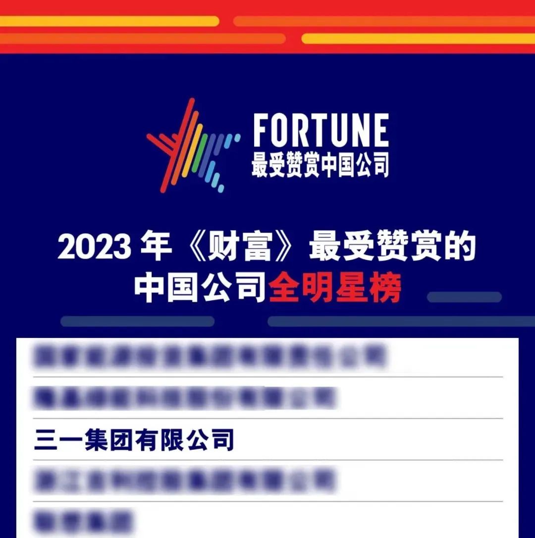这一年,三一集团同时入选“2023年《财富》最受赞赏的中国公司”全明星榜及行业明星榜。这是三一连续第十三年荣膺全明星榜,连续第十五年收获行业明星殊荣。