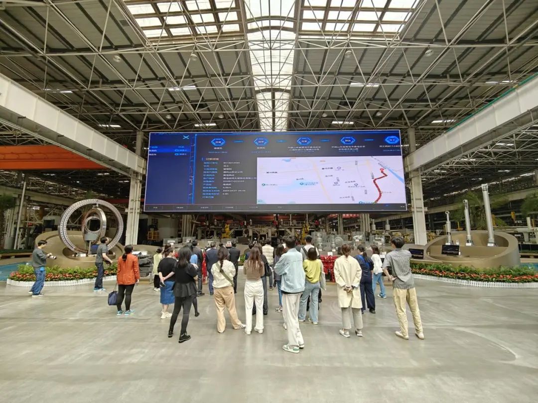 △主题党日活动参与人员参观三一重工“工厂中控大屏”,实时观看C端互联、设备互联的数据演示,以及全国工厂的实时实景。