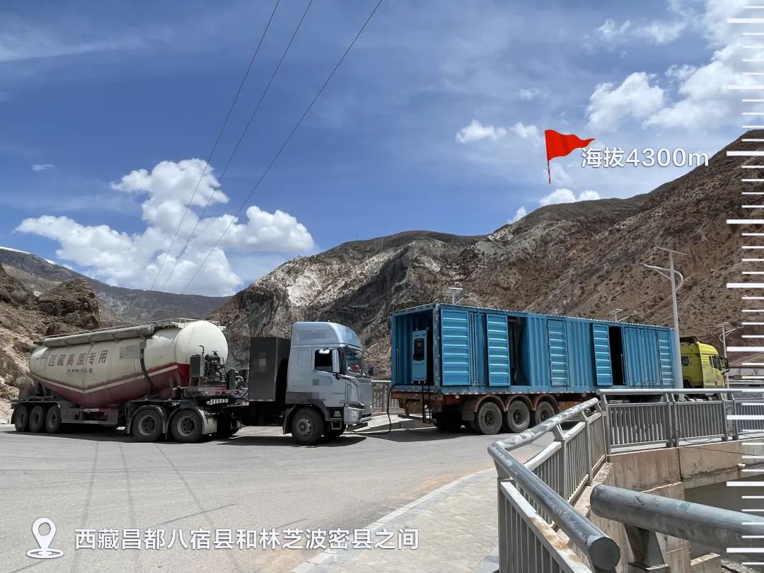 在路测中,移动充电站为电动车辆的性能测试、能耗测试、稳定性运营测试提供增程补能服务,日工作8h以上,为客户服务充电10000+KWh,保障车辆累计运行5000+km,配合客户进行氢电融合物流运输规划布局试验,为客户未来在川藏建设项目中推行电动化运营方案提供了有利支撑。