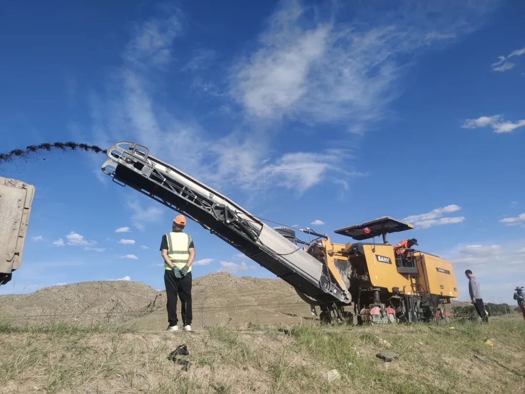 在X082旅游线的两旁,是一望无际广阔无边的内蒙草原。为了保障X082的通行安全和道路质量,为游客提供更为便捷和舒适的旅游体验,X082旅游线养护工程正在如火如荼的施工中。在一片绿意中,三一SCM2000C-10铣刨机轰鸣前行,将原本老旧、病害的路面一“铣”而光。