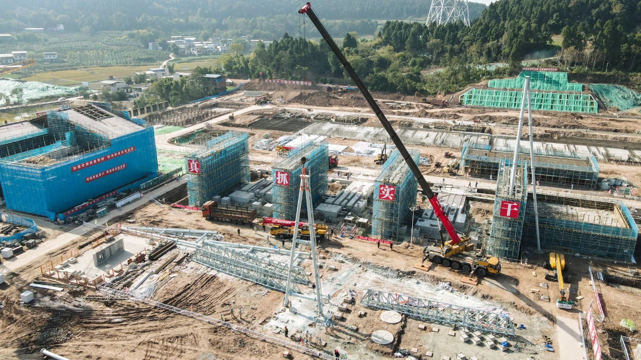 四川省重点工程——川渝1000千伏特高压交流工程复工建设,作为该工程重要组成部分——天府南、成都东1000千伏特高压变电站建设现场一片繁忙景象。