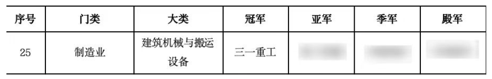 产业领军企业的定义,是按照经济学的产业集中度CR4概念,选取在产业内综合得分排名前四名的企业,分别为冠军企业、亚军企业、季军企业、殿军企业,统称为领军企业。本次榜单涵盖了90个大类产业中的360家企业,三一重工在建筑机械与搬运设备行业中荣膺首位,获得“冠军企业”称号,并在综合排名中位列第113位。