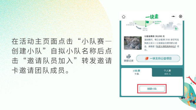 您还可以通过线上动员以【小队赛】形式,邀请身边人一起发起组队挑战,以志愿者团队、家庭、跑团、好友团等名义,为地球可持续发展贡献力量。