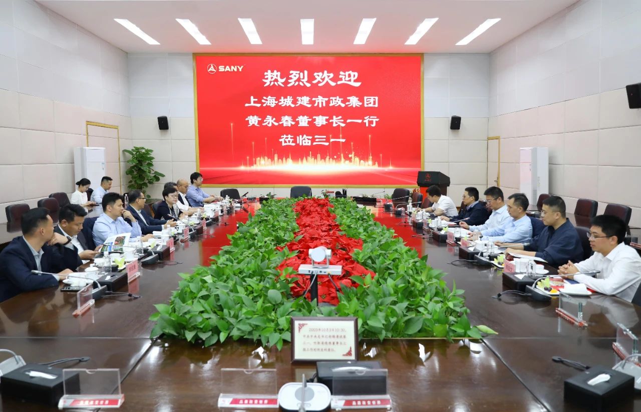 10月8日,上海城建市政集团党委书记、董事长黄永春率队到访三一集团长沙产业园,与三一集团轮值董事长、总裁唐修国举行座谈,双方围绕智能建造、投资开发、源网荷储、装配式建筑、生态合作等进行深入探讨,共话未来发展。