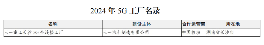 近日,工业和信息化部发布《2024年5G工厂名录》,三一重工长沙 5G 全连接工厂入选。